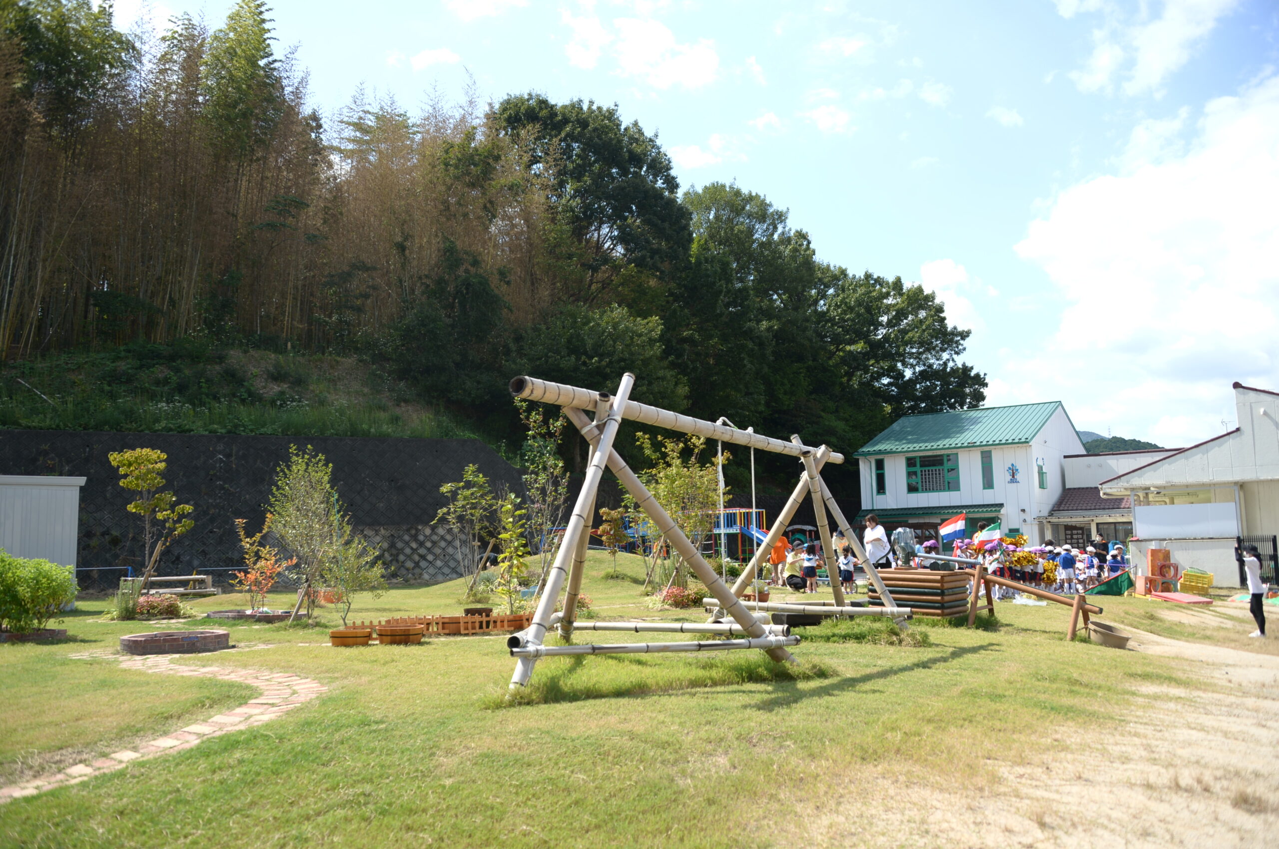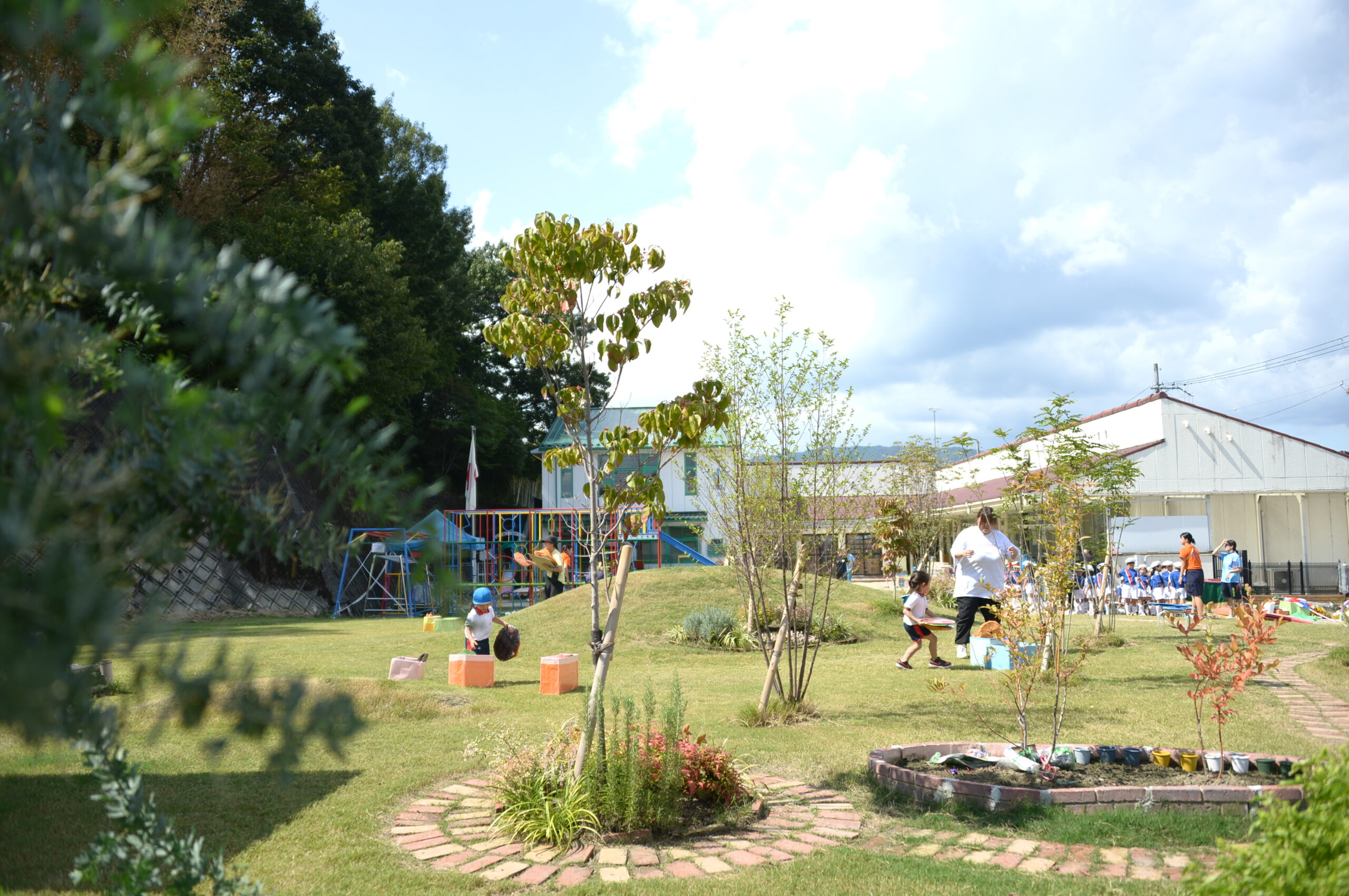 生れてからの数年間、脳は一生のうちで一番成長します。全てが受動的で自分からの発信は泣いて伝えるだけの所から、感情が芽生え、その芽生えた感情を的確にコントロールし、思いを伝え他者と共有し、他者の思いを聞き受け止める。その場に会った言葉を選んで人間関係を構築し、その関係を広げ深める。自分の事だけでなく他者のためにも時間と労力を惜しまず注げる優しい気持ち。共に競い合って励まし合って成長し合いう仲間作り。そういった事全てを脳の成長であり、人の成長と言えます。私達人間は、この成長の基盤を ”遊び” を通して学んでいきます。椅子に座って認知能力(国語・算数・理科・社会等)を身に着けるのとは違い、自分で嬉しい・楽しい・悲しい・苦しい等の体験を通して 非認知能力(もっともっとの気持ち・優しさ・共感力等)を育てる事が認知能力の育ちに繋がっていきます。その基礎の部分の育ちは五感を通した遊びが不可欠です。虫を探し追いかけ色々な命に触れ、植物や体を使った友達との遊びが ”こころ” を良い方向に向けてくれます。